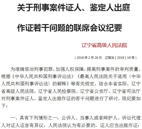 关于刑事案件证人、鉴定人出庭 作证若干问题的联席会议纪要